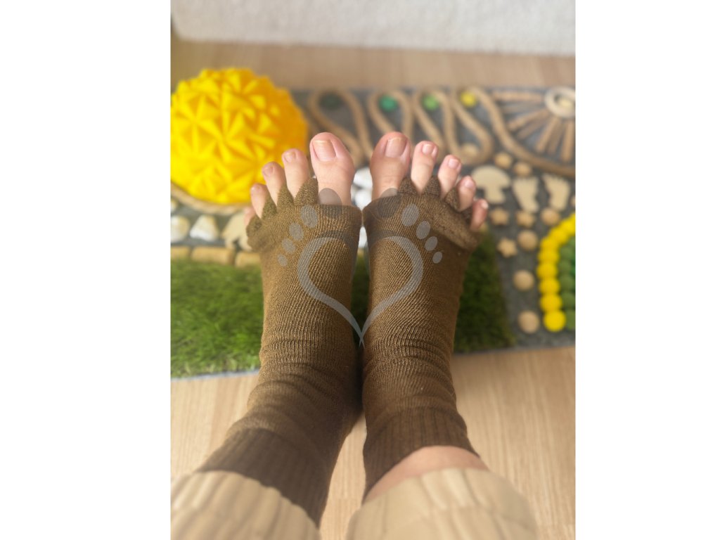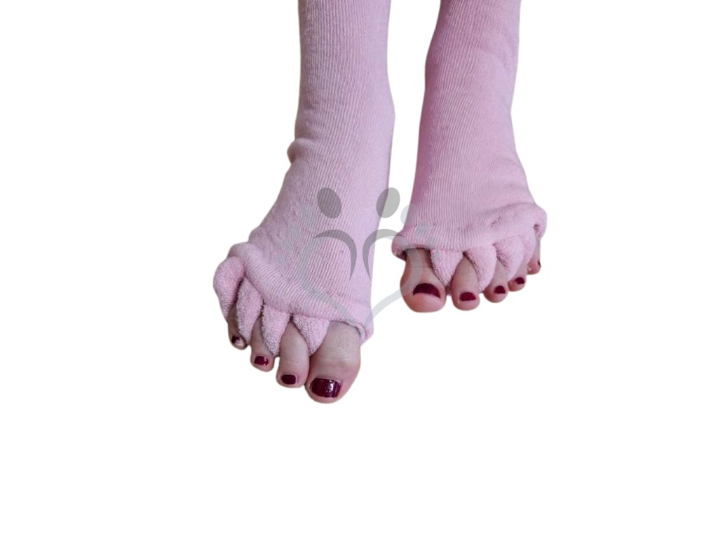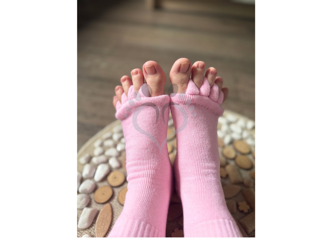 Naše uvoľňujúce ponožky sú navrhnuté tak, aby jemne rozdeľovali prsty na nohách, zlepšovali cirkuláciu, rovnováhu a drženie tela. Sú vhodné pre deti aj dospelých – ako prevencia aj ako doplnková starostlivosť pri už vzniknutých problémoch.